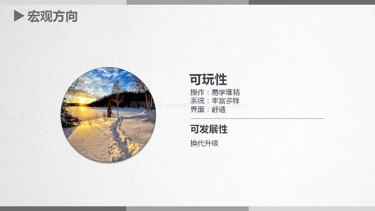 换代升级,今天开一个新系统,明天搞一个新活动,花样不断,让玩家玩不腻,玩不到头。国内很多是让玩家玩不够的方法就是让玩家充不够,不管充多少前面都有比你充的多的,这不是一个好的办法,玩不到头应该是让游戏的可玩性高一点,像国外很多游戏计时收费也就是付点卡,玩家玩得好就愿意付费给你,国内外经营理念不同,国情也不同,咱们就说他的更新换代,玩法多,我们就觉得这个游戏就是一个比较好的游戏。