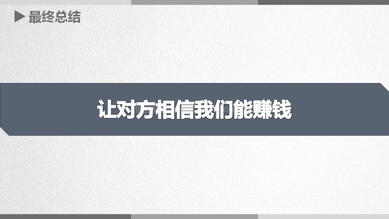 2.提高身价:可能你现在的行业地位为零 ,他们是行业的最高端,你要给他表达一下,我们是XX量,配合一些XX量,数据都还不错,提高提高自己的身价。
