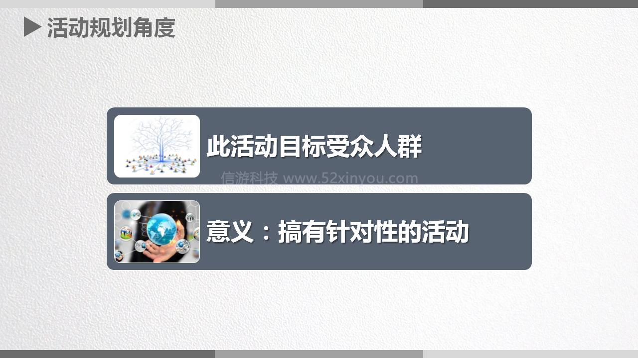 比如说我们现在搞了一个活动,充5000送一部手机,如果是小职员学生,他可能就冲了,如果是比较高端的企业领导,那这个活动对他就没有吸引力,但如果是充10万限量跑车开10天,他可能就比较感兴趣。所以一定要分析好搞活动针对的是什么人群,不同的人群会有不同的活动搞法,后面还会跟大家分享搞活动的技巧和方法。