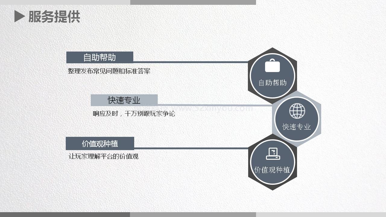 快速专业:处理玩家问题时,一定要响应及时,千万别让玩家等,哪怕这个问题要3天才能处理完,那你也要隔三差五的安抚他一下,比如今天告诉他处理到哪一步了,后天就处理完了,第二天再跟他沟通一下让他不要着急明天就处理好了等等,一定要响应及时,哪怕一时半会解决不了也要及时沟通,还有千万不要跟玩家争论,要想办法去跟玩家去解释,千万不能争,争的结果就是你赢了玩家走了,你输了他就膨胀了,尤其是无理取闹的玩家,很多这样的,他就会想方设法的告诉他游戏好友赶紧跟这个客服打架咱们能争取来什么权益,所以咱么不要跟玩家争。